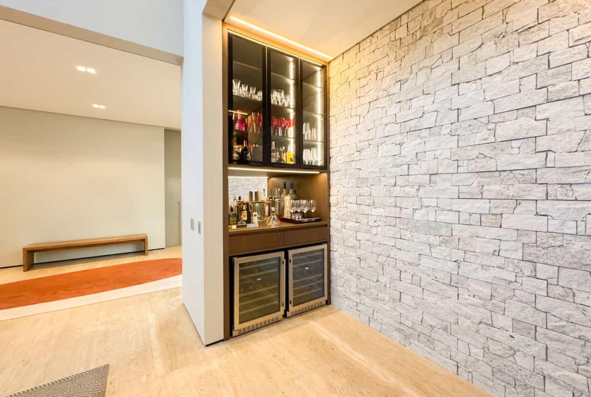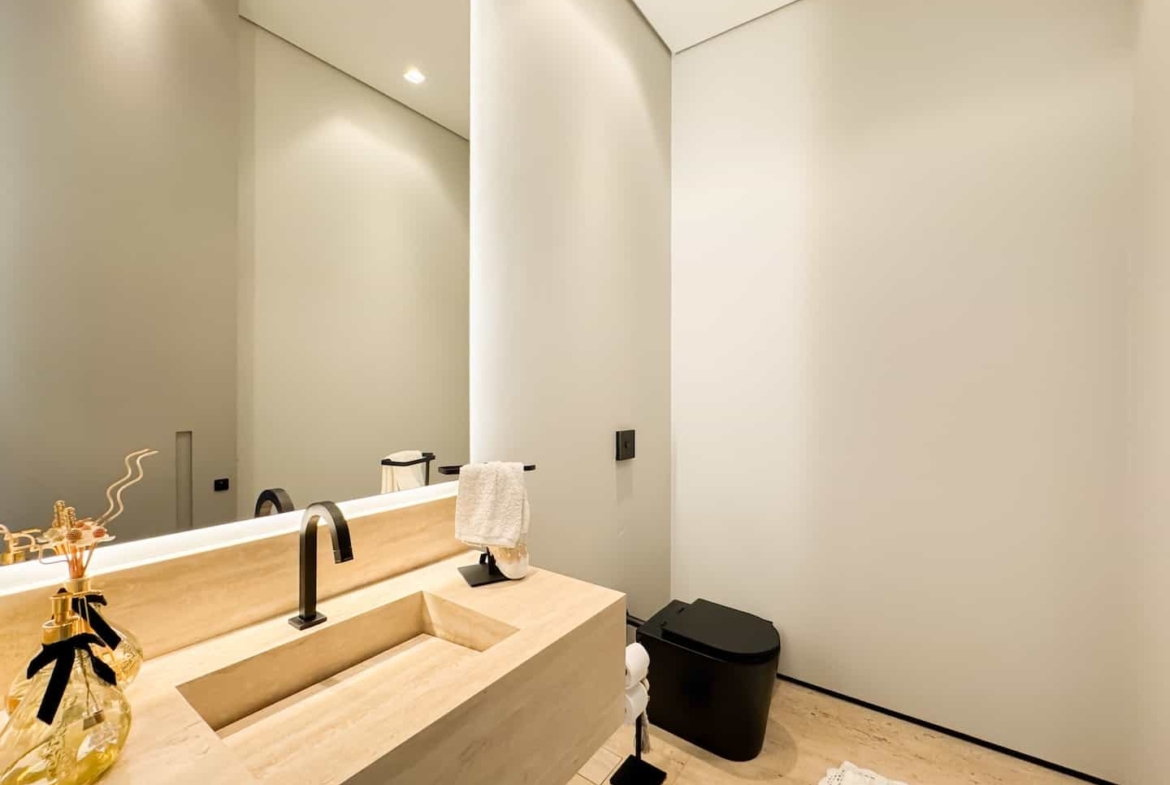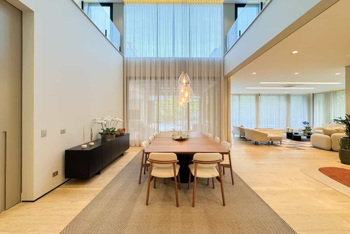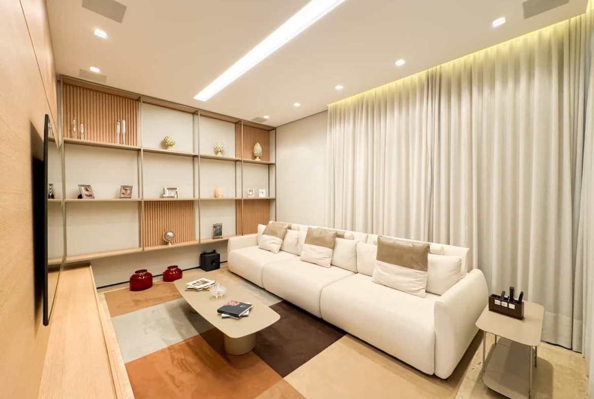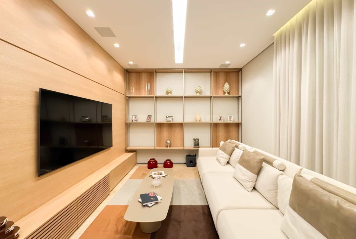 Assinada pelos renomados Ricardo Calejo e Guilherme Gabriel, com interiores de Giovana Santi e paisagismo de Juliana Fellin, esta residência de 1.012,43 m² construídos em terreno de 909,84 m² traduz o encontro perfeito entre estética, inovação e bem-estar.