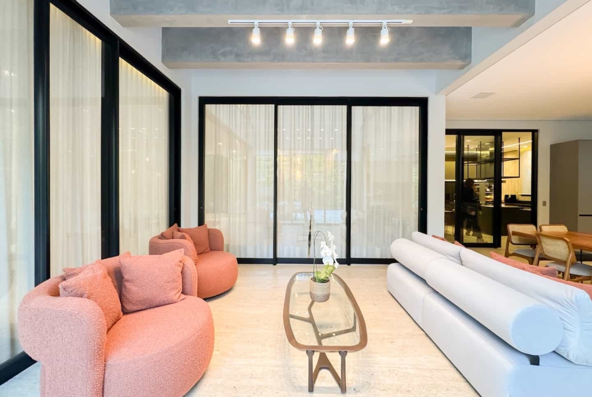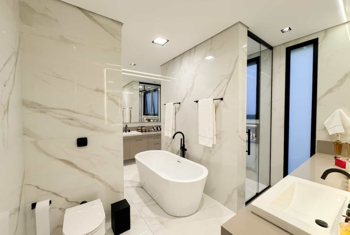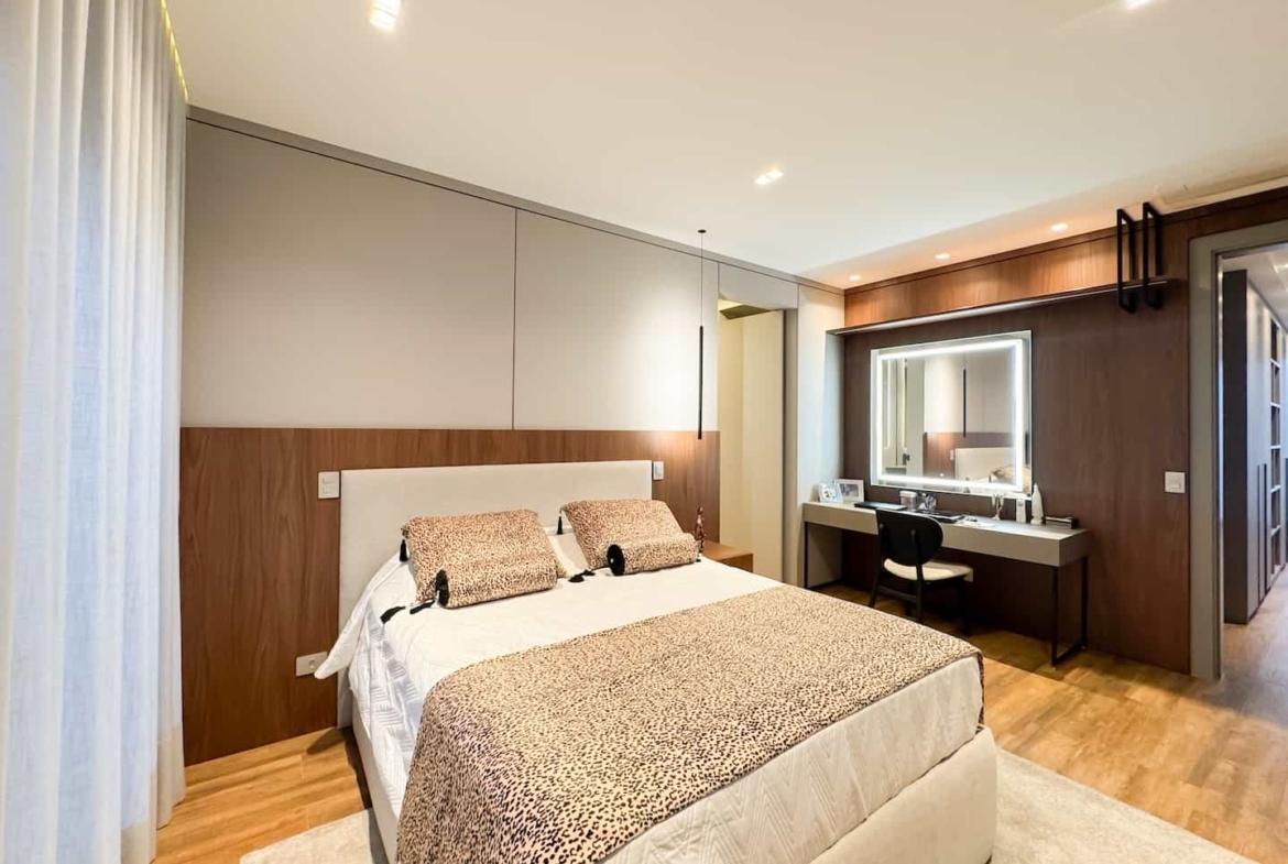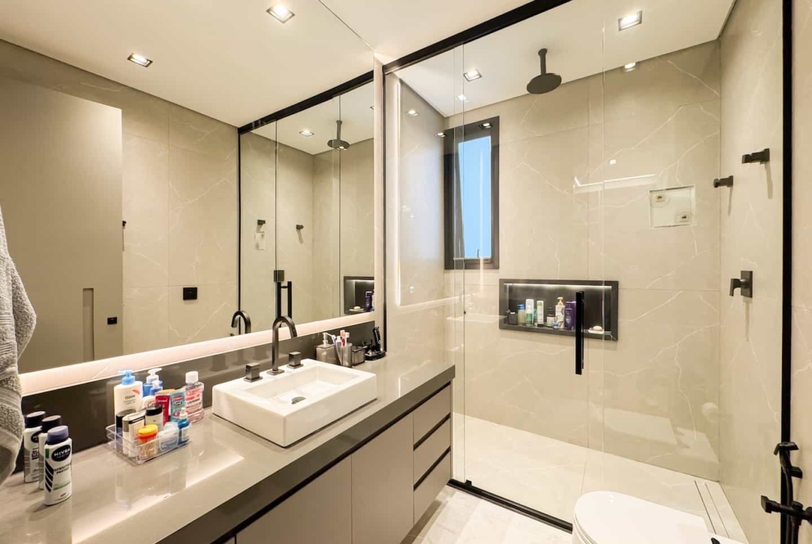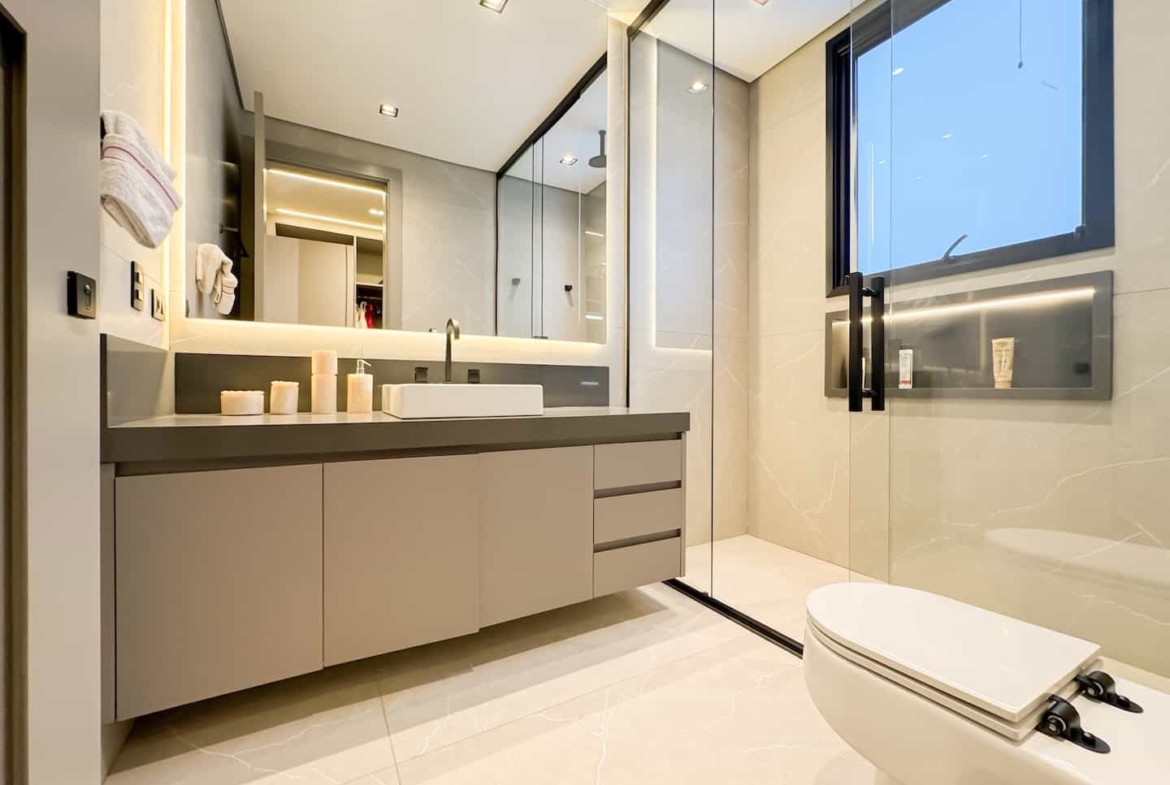 Assinada pelos renomados Ricardo Calejo e Guilherme Gabriel, com interiores de Giovana Santi e paisagismo de Juliana Fellin, esta residência de 1.012,43 m² construídos em terreno de 909,84 m² traduz o encontro perfeito entre estética, inovação e bem-estar.