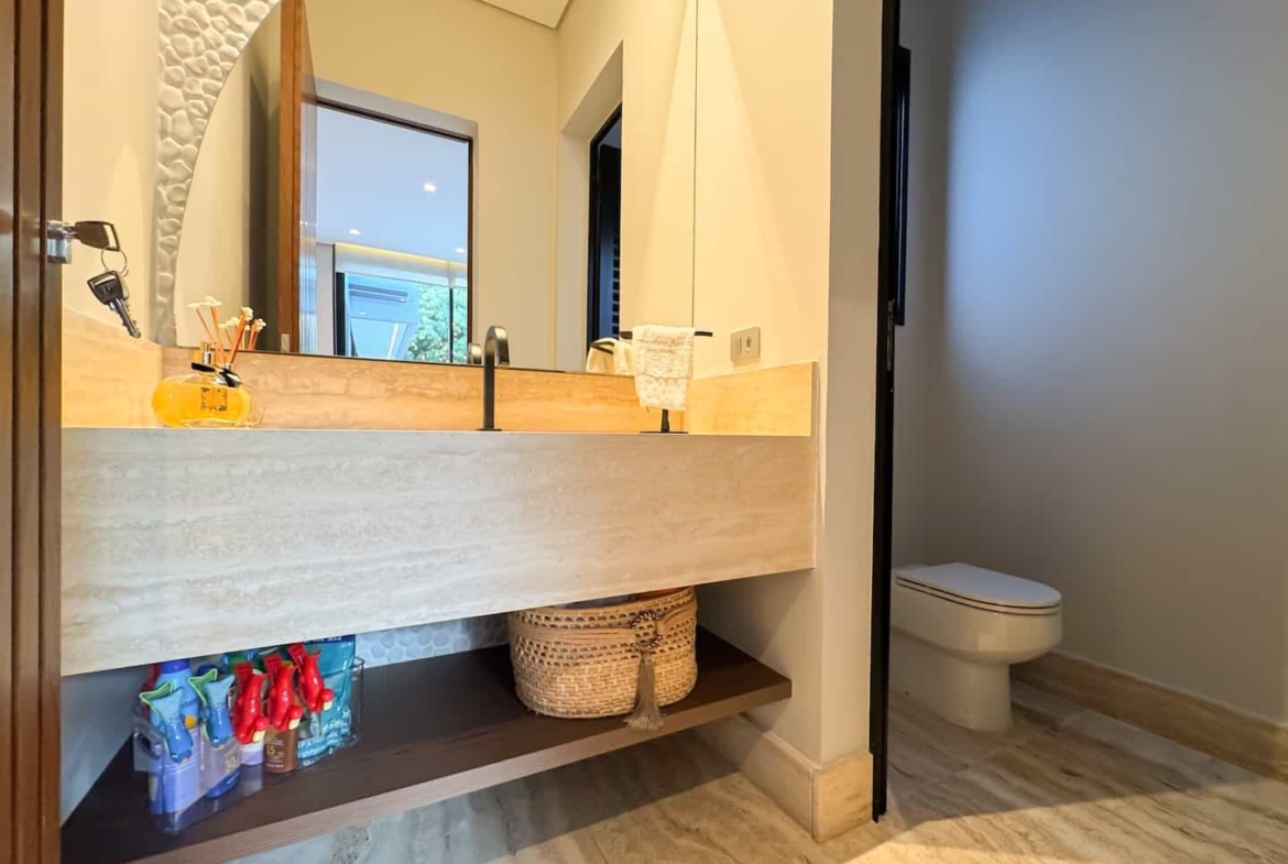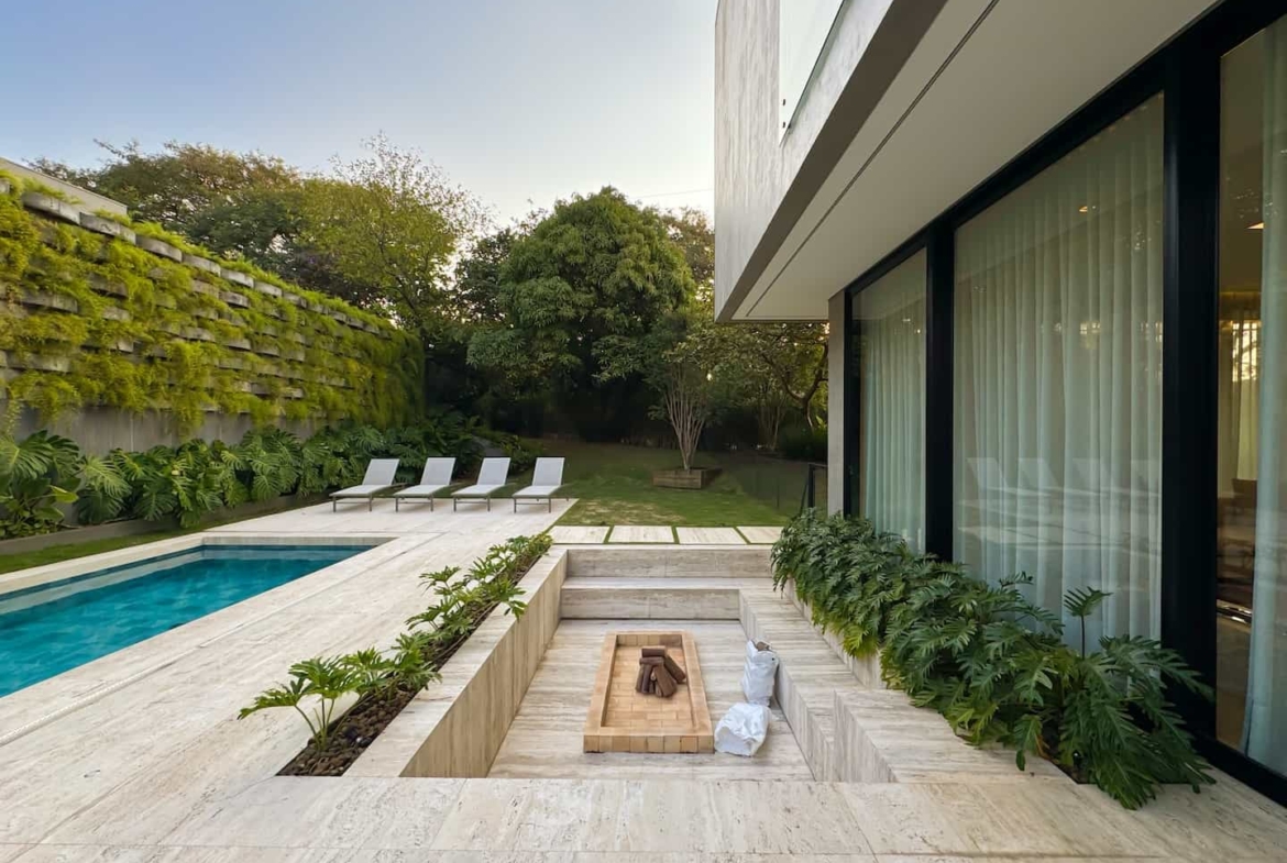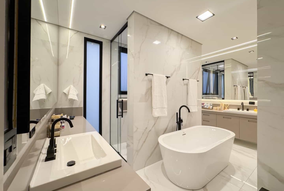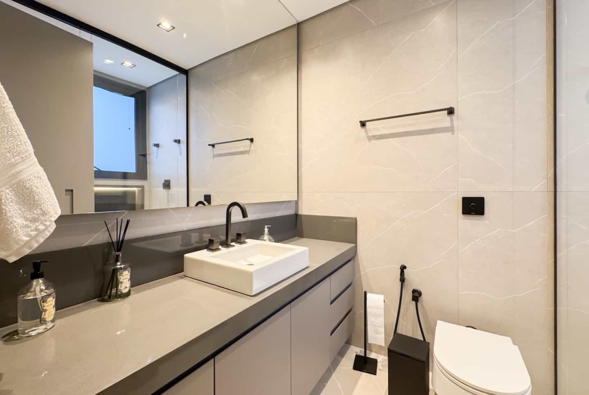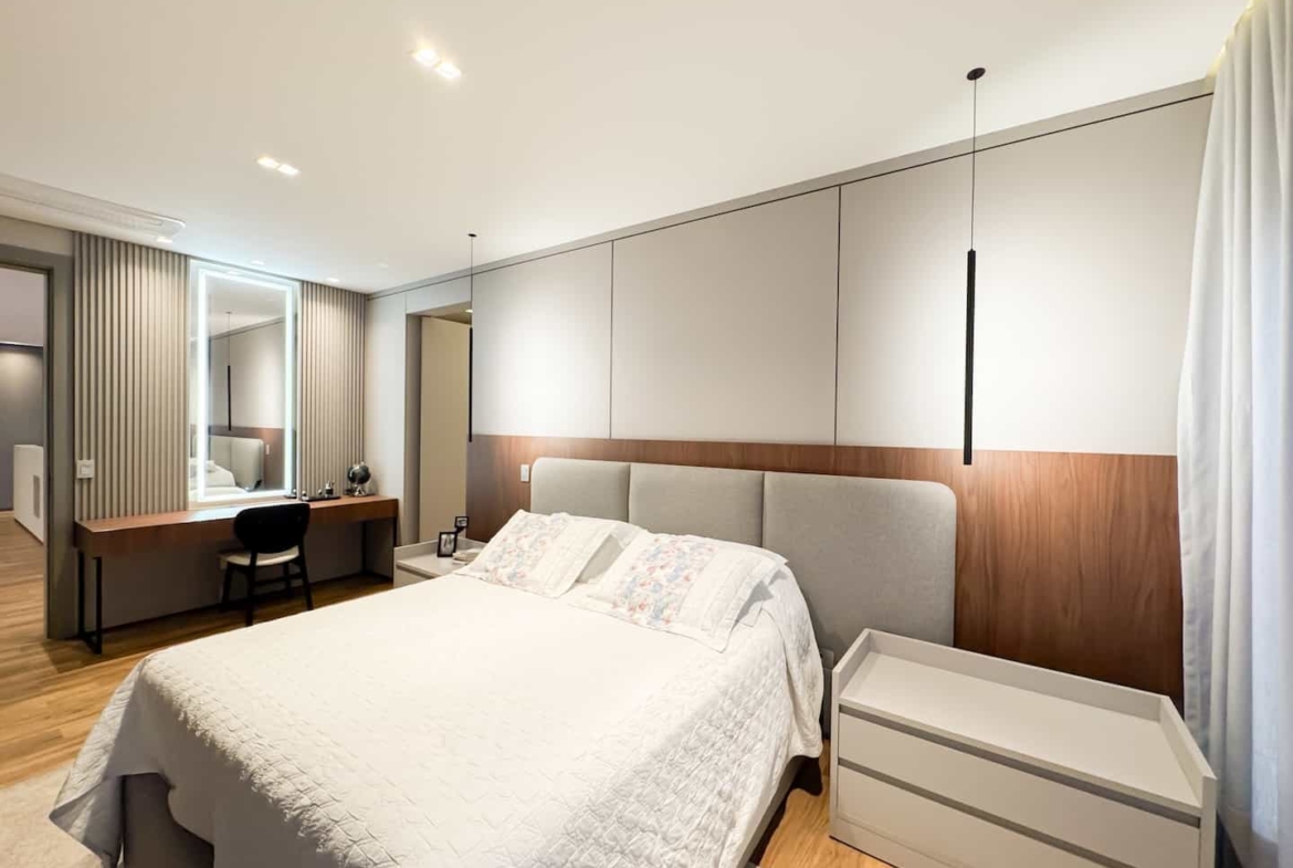 Assinada pelos renomados Ricardo Calejo e Guilherme Gabriel, com interiores de Giovana Santi e paisagismo de Juliana Fellin, esta residência de 1.012,43 m² construídos em terreno de 909,84 m² traduz o encontro perfeito entre estética, inovação e bem-estar.