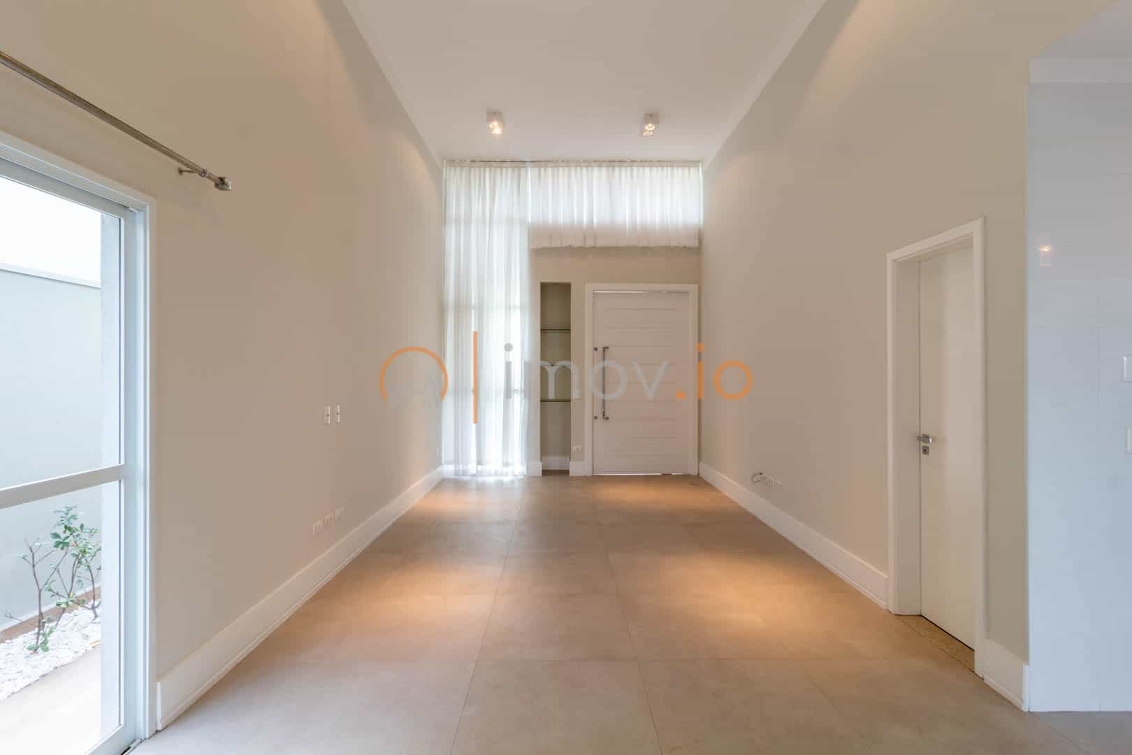 Logo na entrada, o living com pé-direito duplo dá o tom da casa: amplitude, iluminação natural e integração. São dois ambientes muito bem distribuídos – estar e jantar – que se conectam à cozinha em conceito aberto e ao espaço gourmet, criando um cenário perfeito para quem gosta de receber.