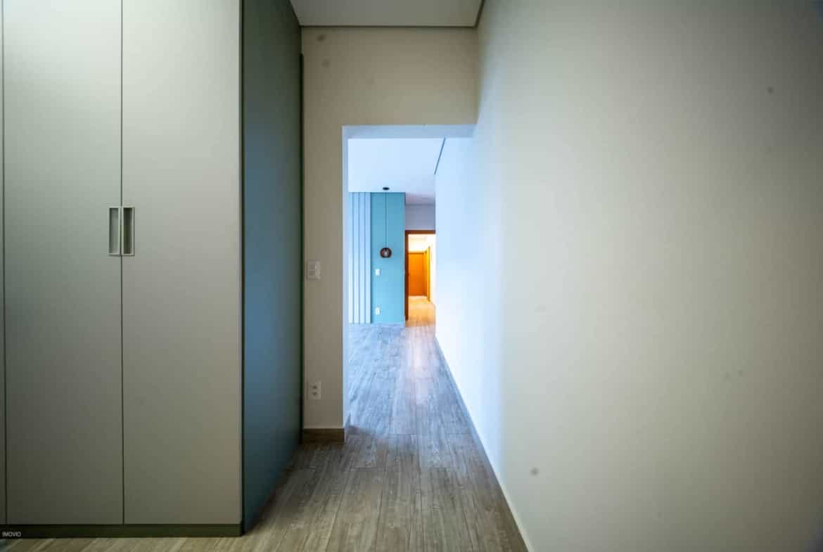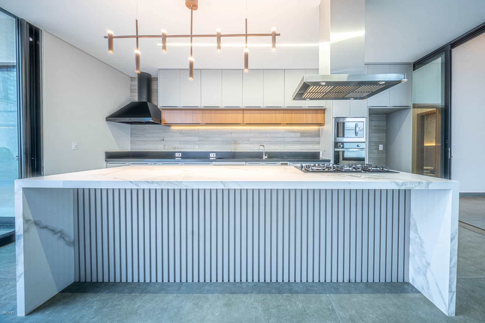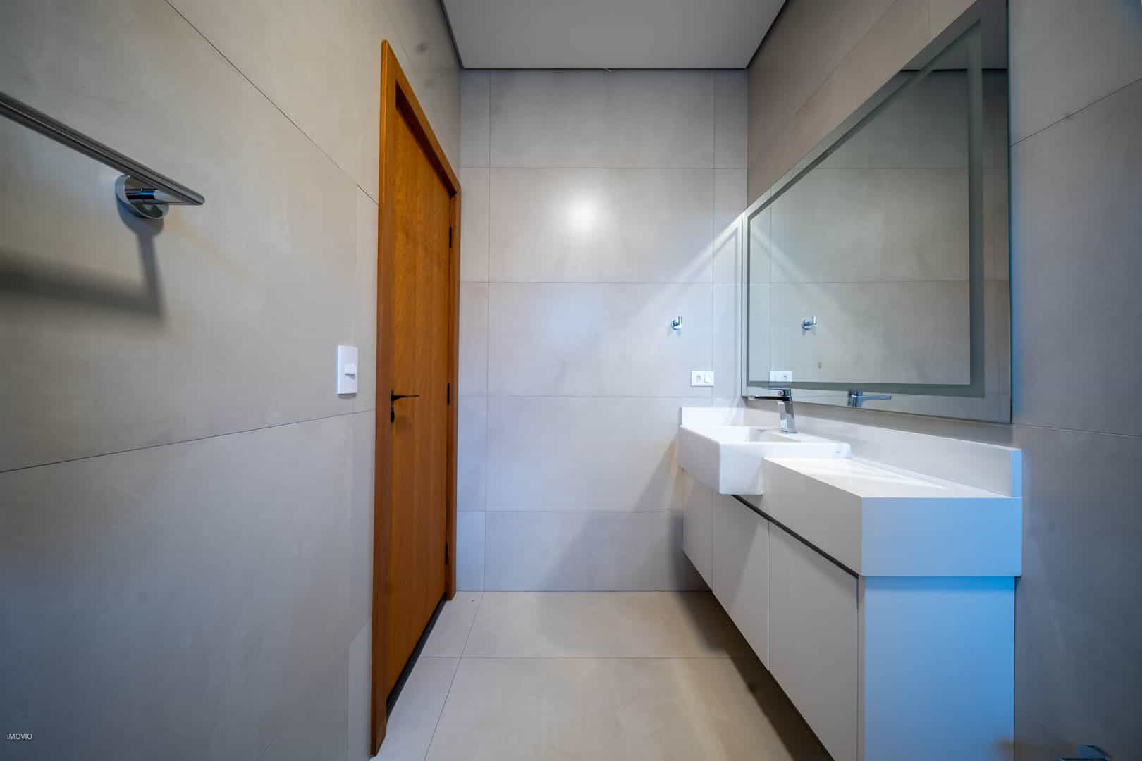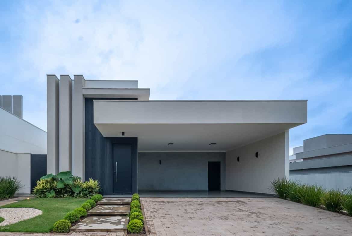 A fachada de linhas verticais e volumes marcantes já revela o que está por vir: arquitetura contemporânea, marcada por proporções perfeitas e uma paleta neutra que privilegia o essencial.
