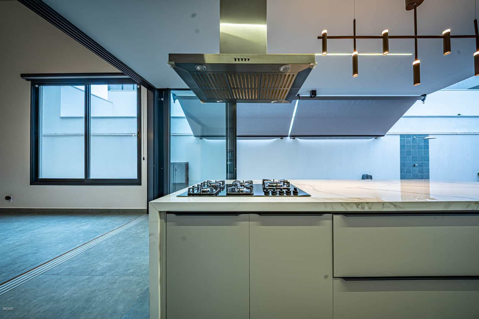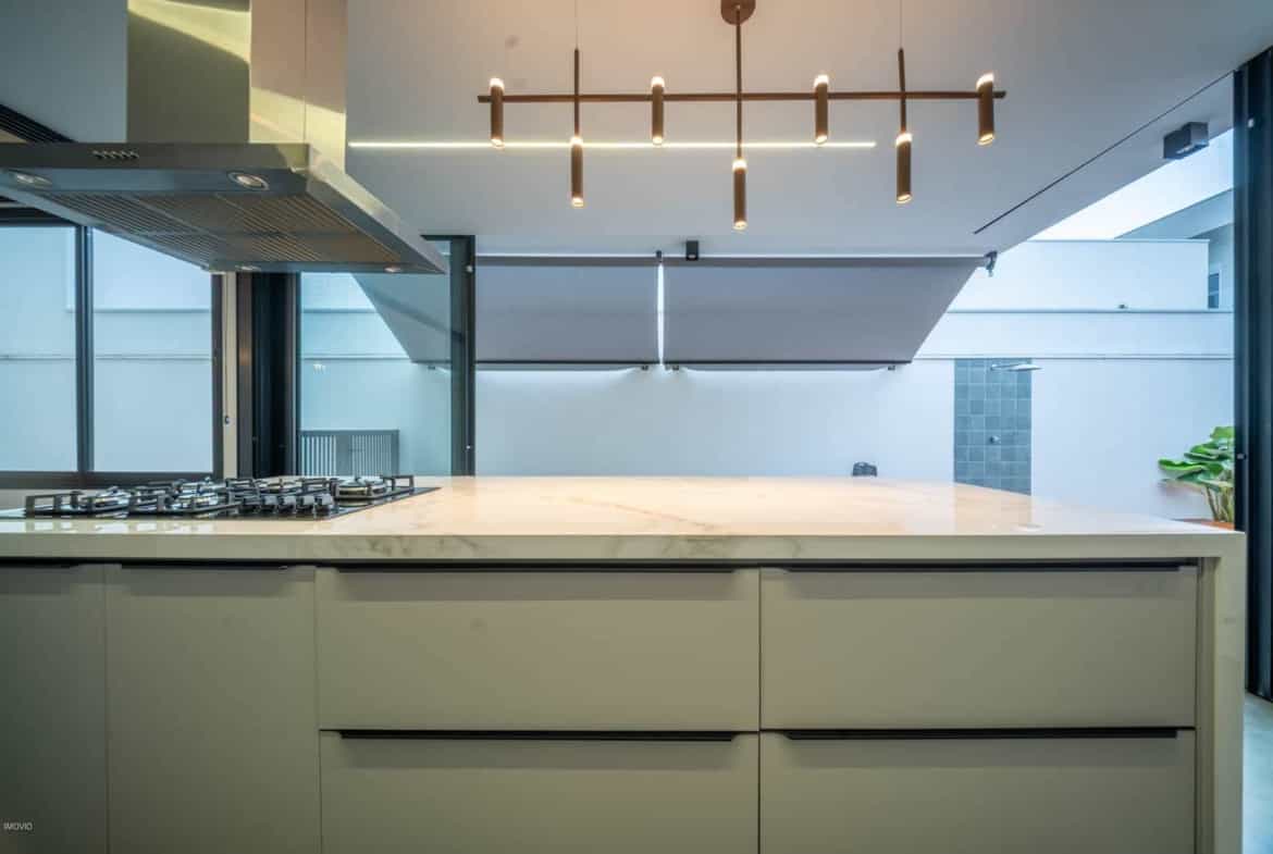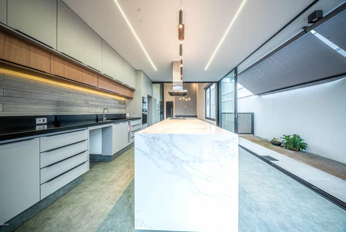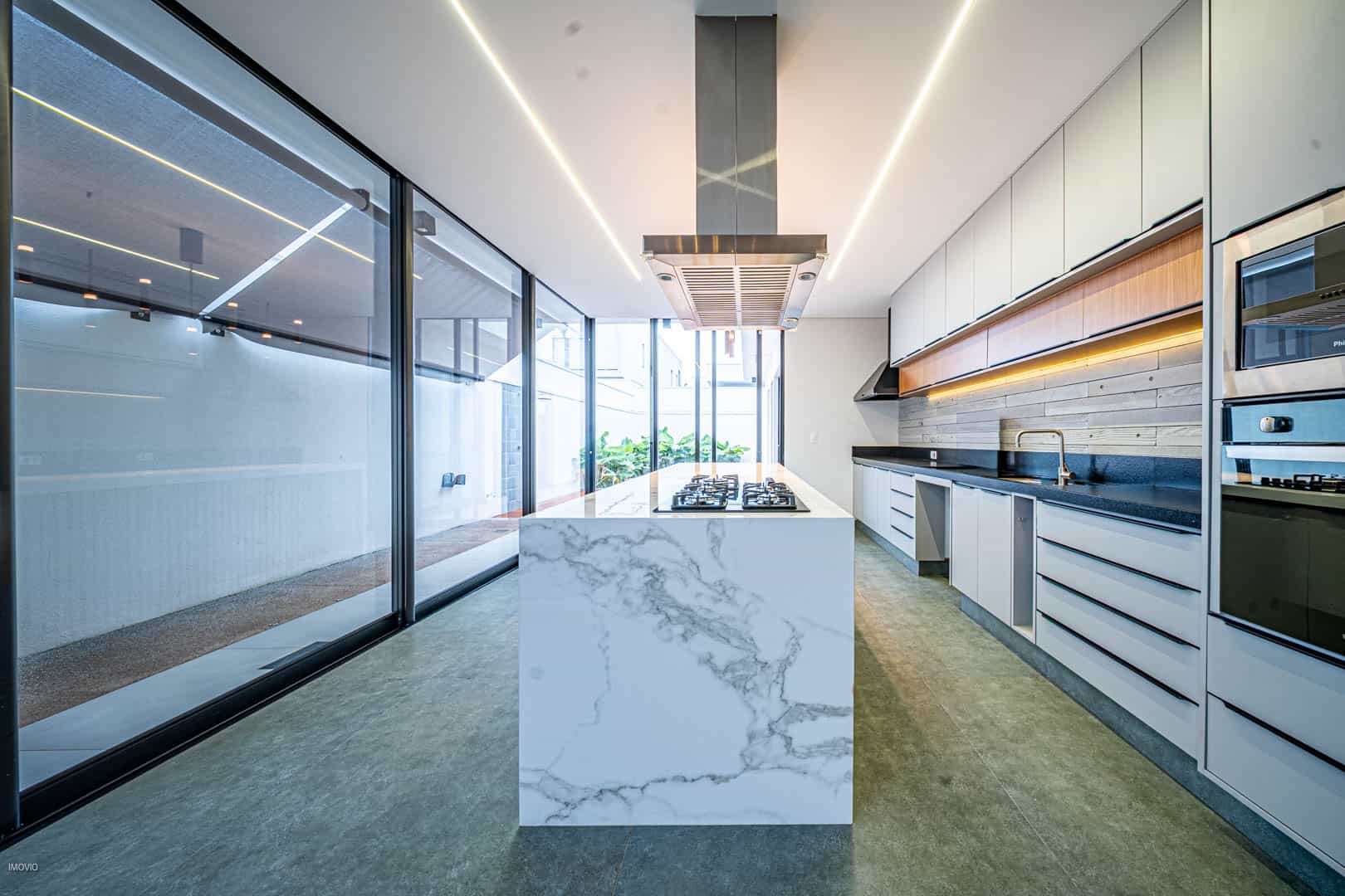 A fachada de linhas verticais e volumes marcantes já revela o que está por vir: arquitetura contemporânea, marcada por proporções perfeitas e uma paleta neutra que privilegia o essencial.
