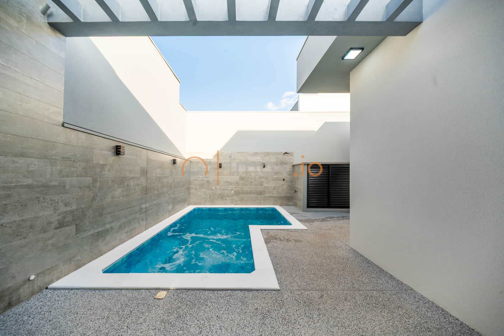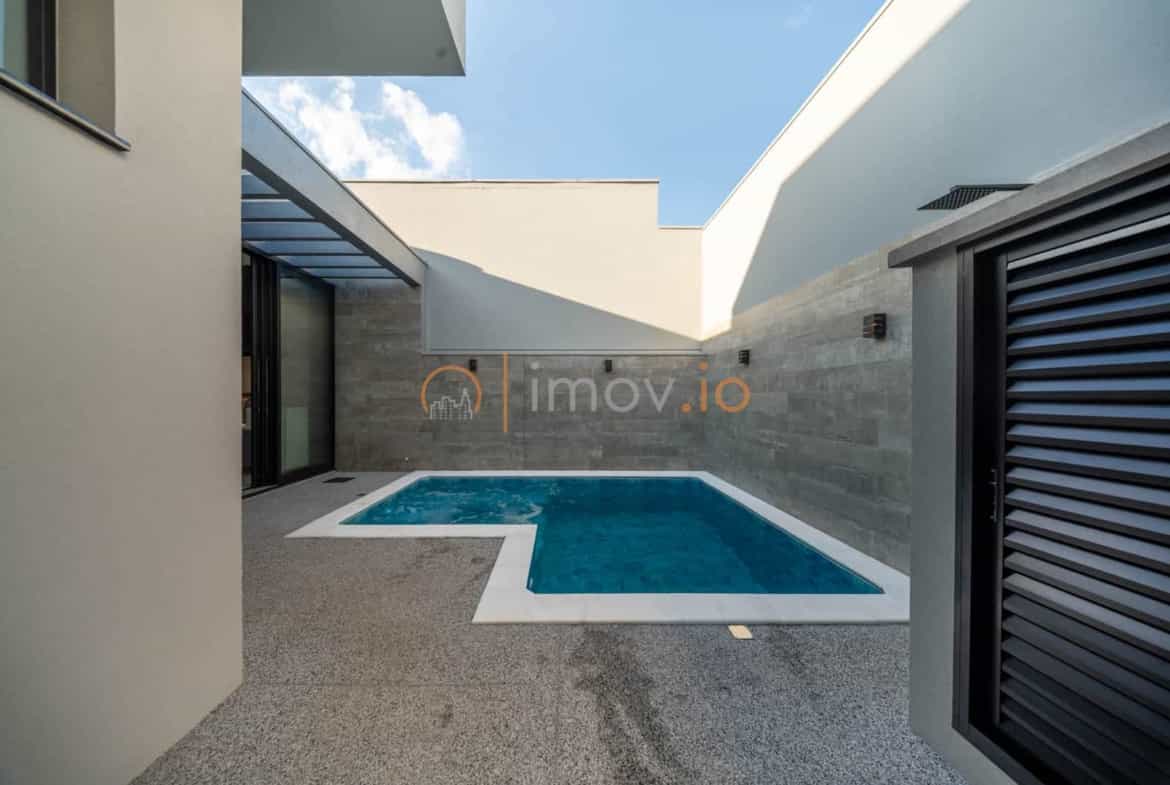 Casa contemporânea com piscina e cozinha planejada Sandrin no Faixa Azul