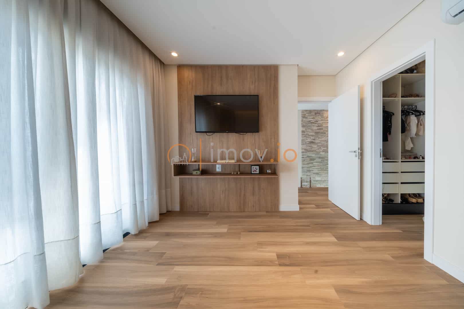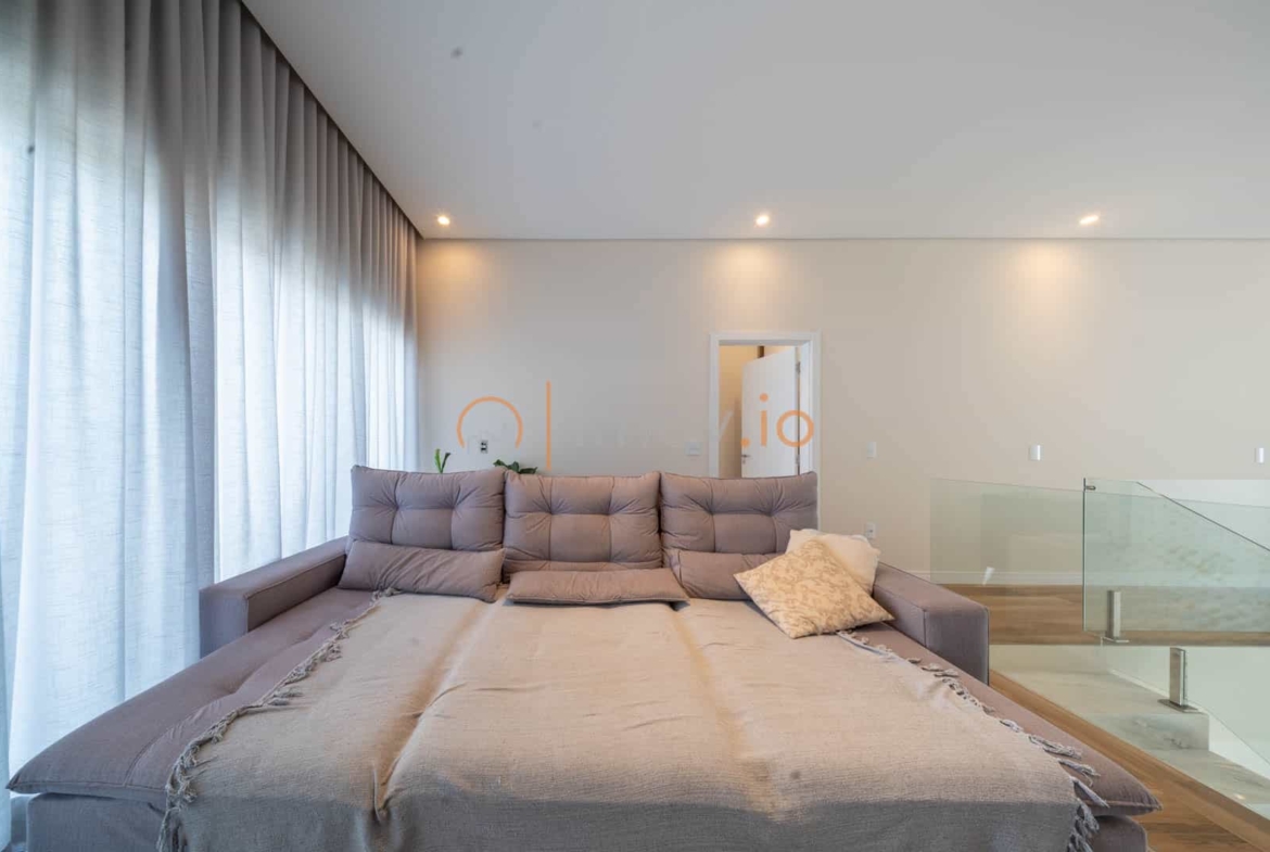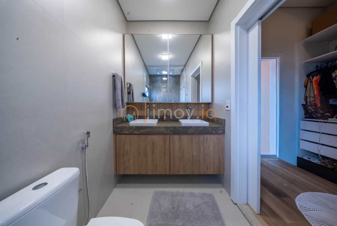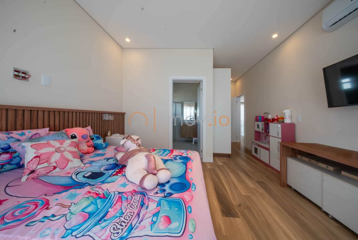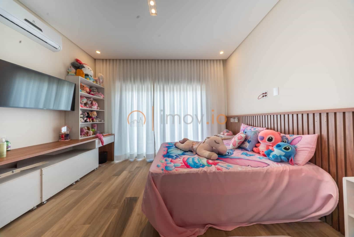 No piso térreo, o dormitório reversível pode ser escritório hoje e suíte amanhã. No superior, os quartos oferecem privacidade e aconchego, com a suíte principal ganhando closet e sacada para aquele momento de pausa que todo casal precisa. Existe ainda a possibilidade de transformar a sala de TV em uma terceira suíte — a casa já pensa no futuro da família.