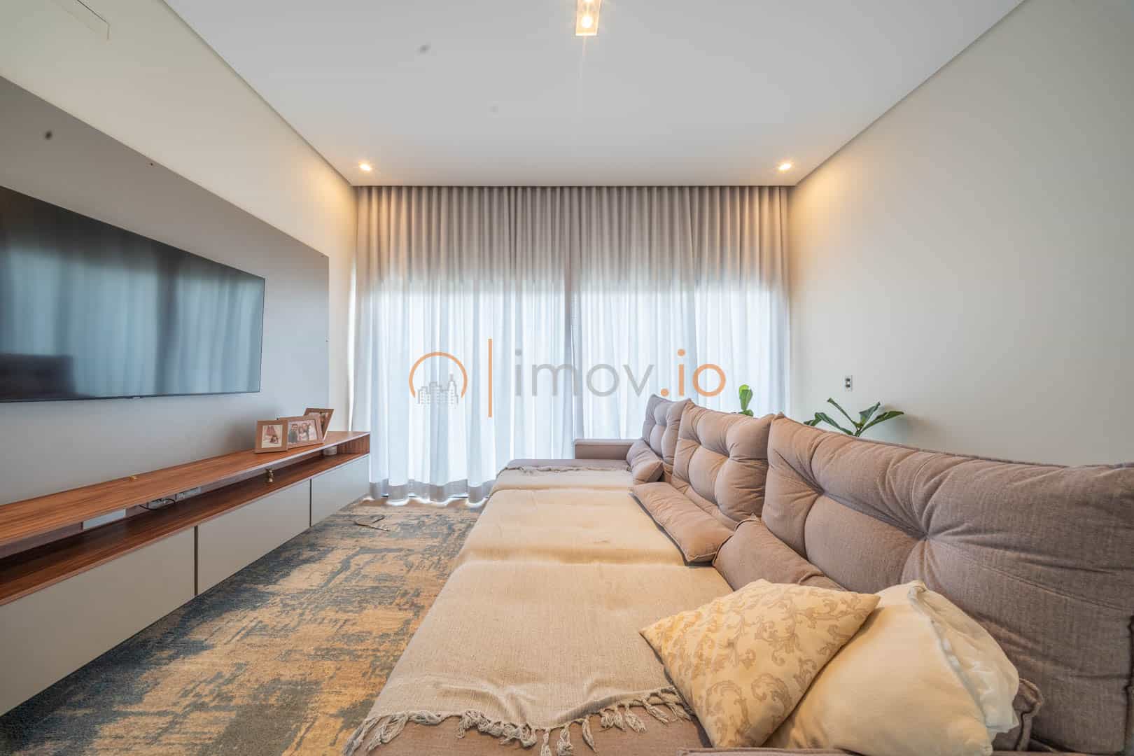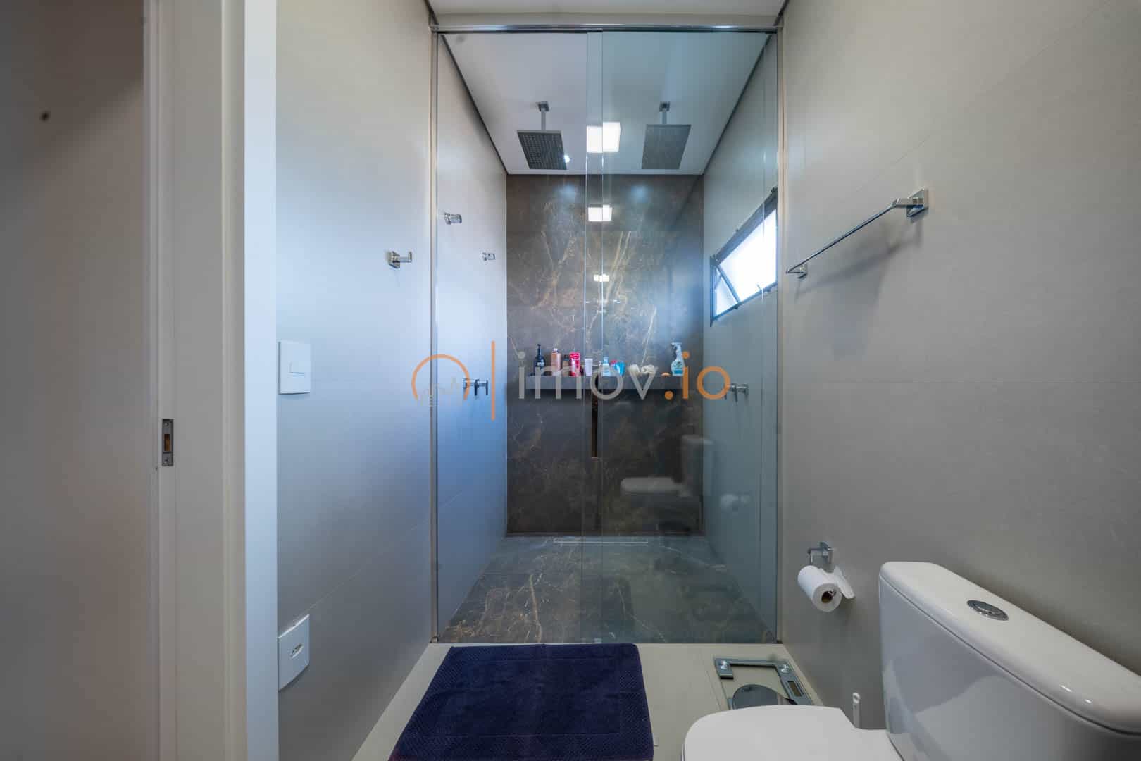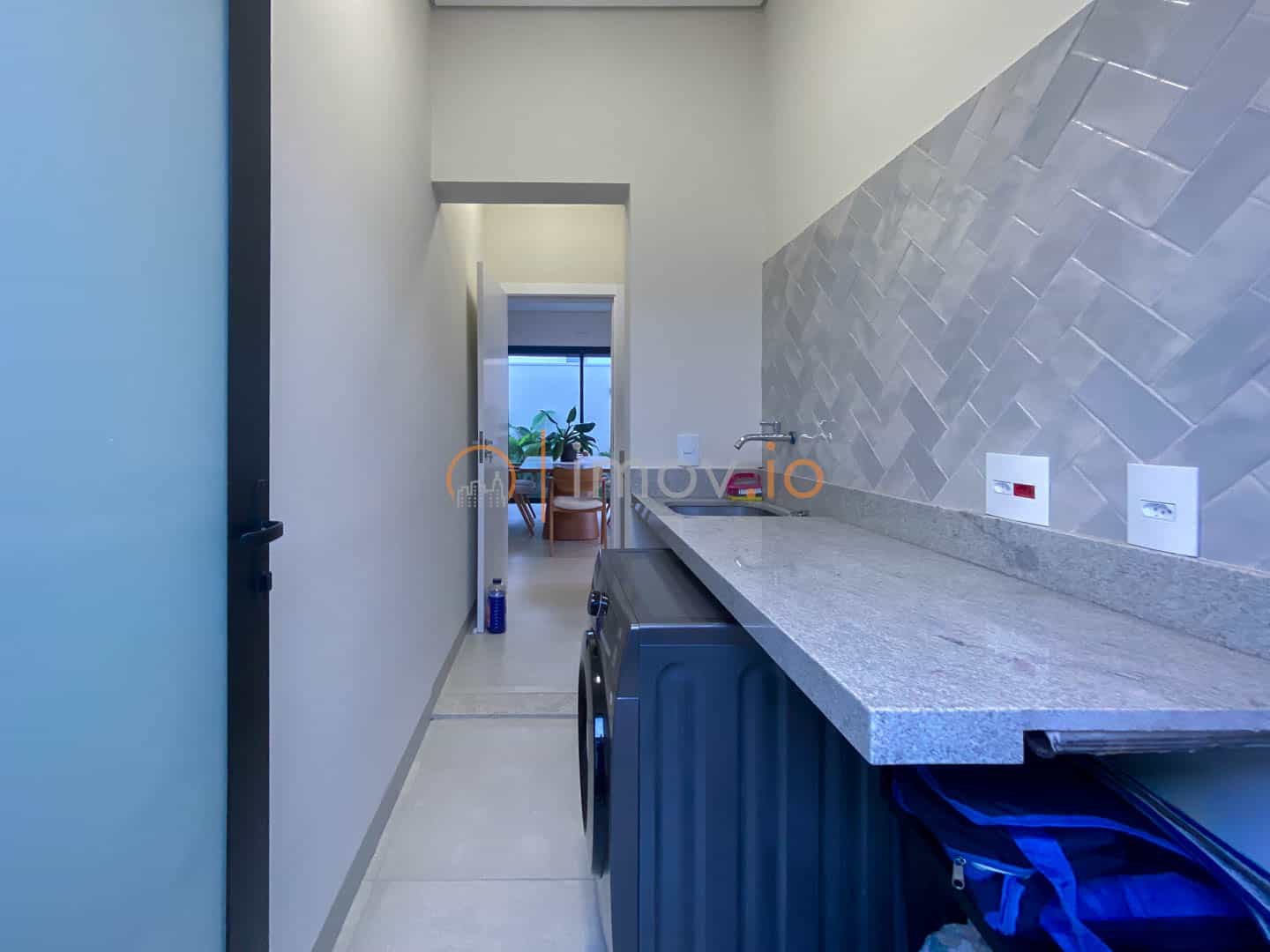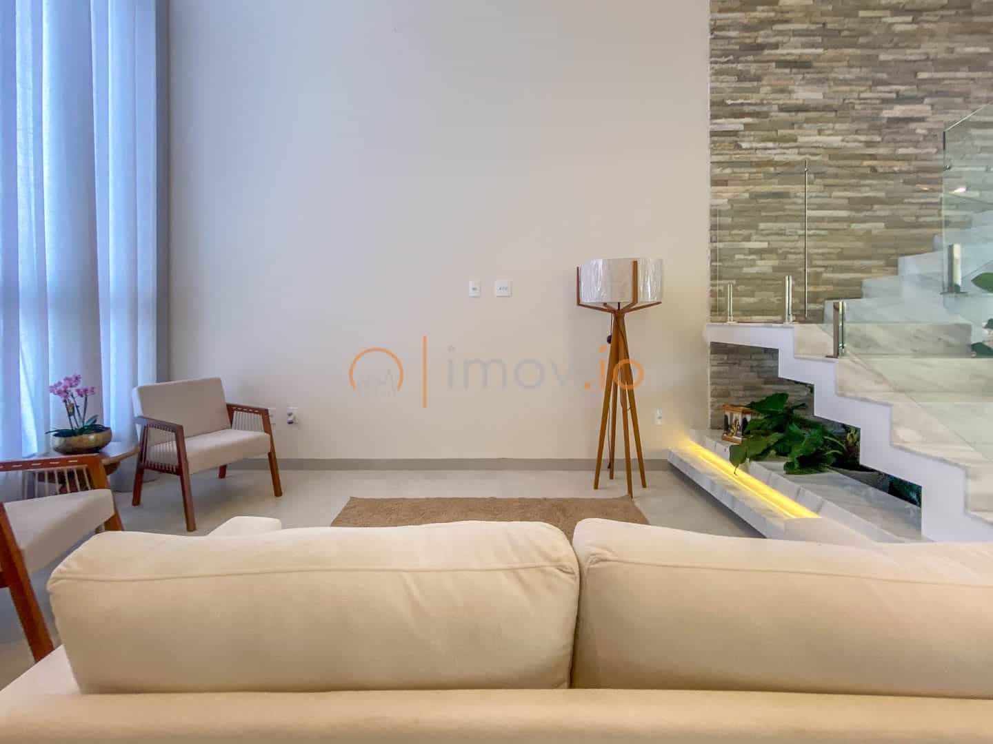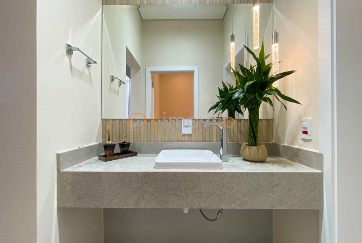 Os acabamentos reforçam a qualidade: porcelanato Portobello, escada em mármore, parede da sala em pedra natural, teto rebaixado com iluminação em LED. Tudo escolhido com cuidado. Ar-condicionado, boiler e preparação para energia solar mostram que conforto e eficiência caminham juntos.