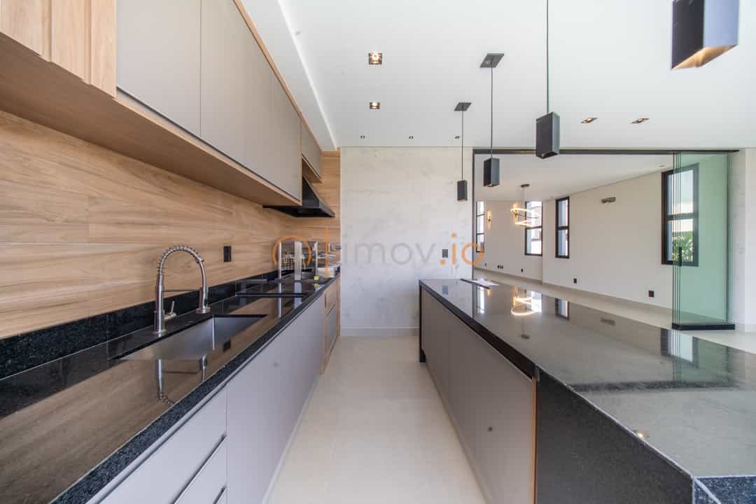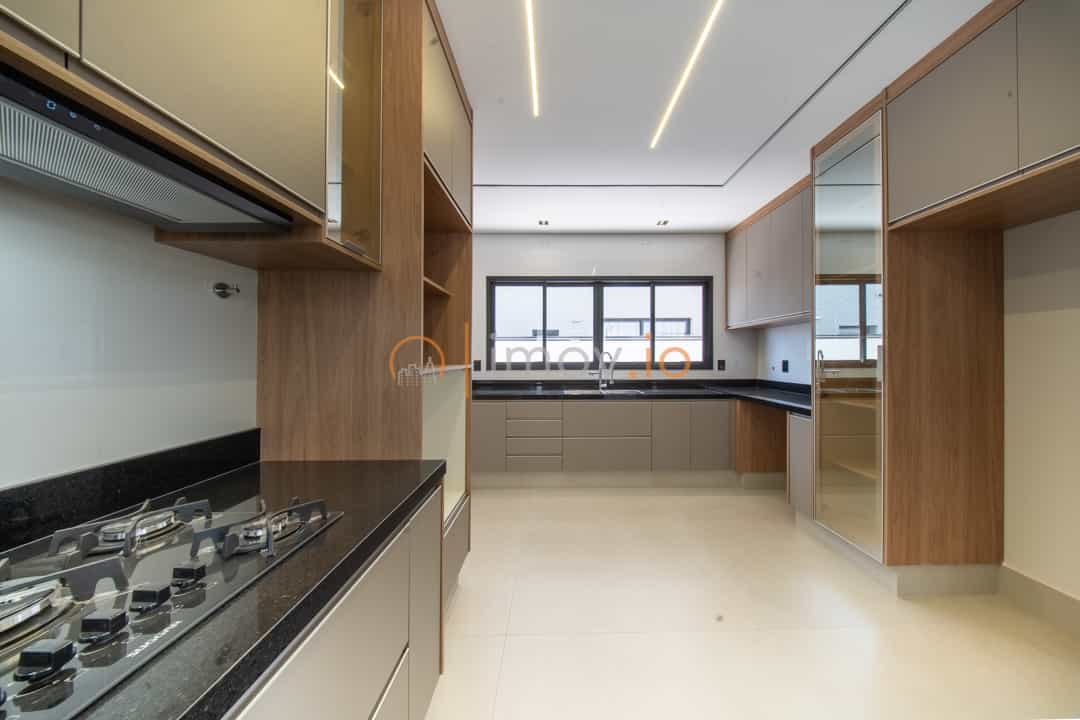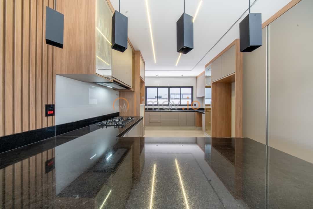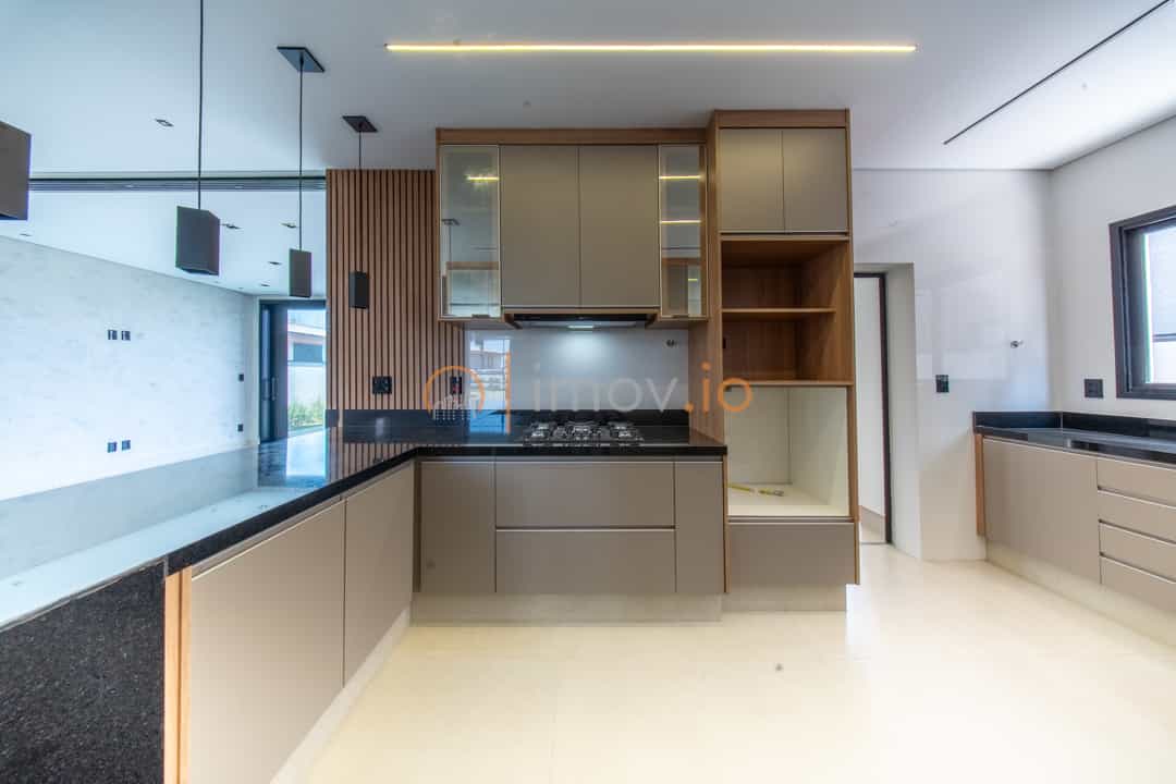 A cozinha ampla, repleta de móveis planejados, conecta-se ao espaço gourmet por elegantes portas de vidro deslizantes, criando um cenário perfeito para receber amigos e familiares.