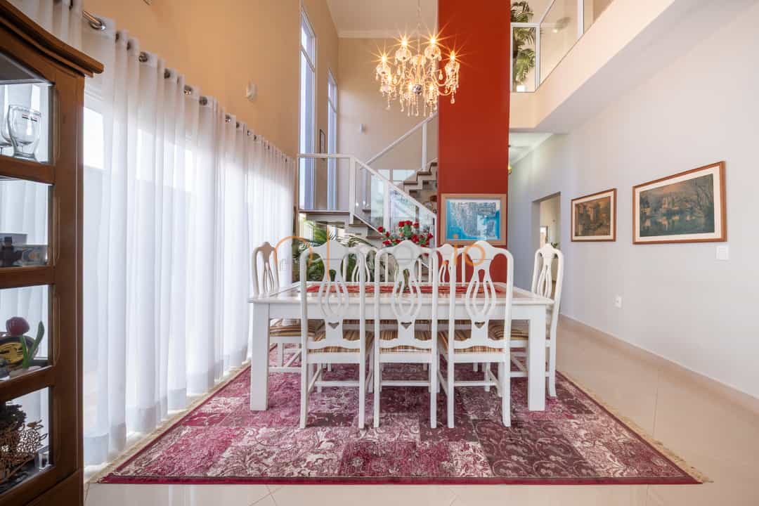 A fachada moderna, com linhas retas e volumetria elegante, antecipa o que se vê dentro: ambientes amplos, iluminados e acolhedores. Logo na entrada, o pé-direito duplo da sala de jantar cria uma sensação de imponência, enquanto a integração entre os espaços garante fluidez e conforto no dia a dia.